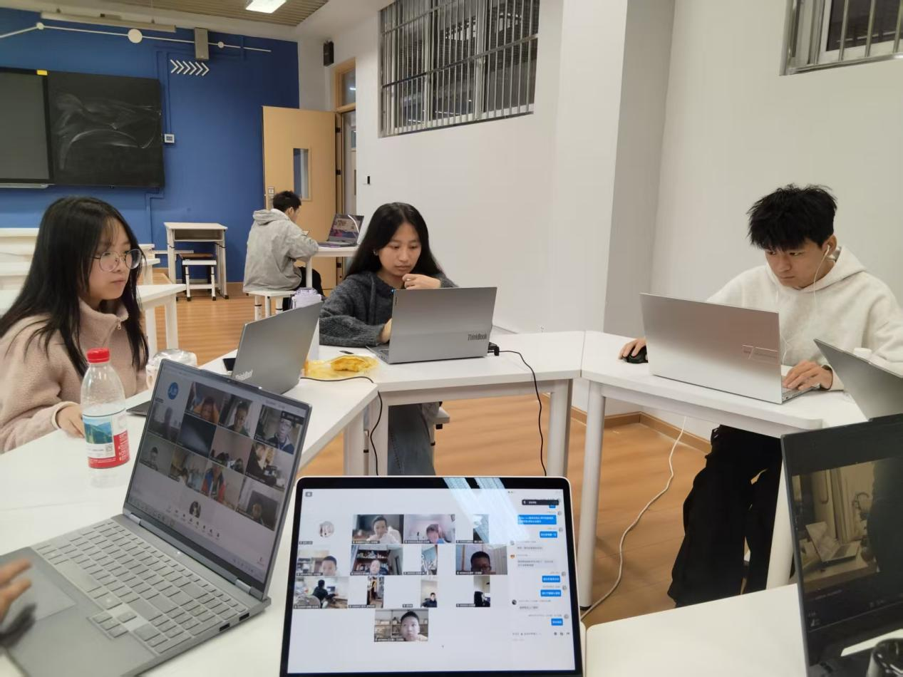 AI 教育成果。刘强校友介绍,成都树德中学深耕 AI 教育多年,不仅构建完善课程体系、发布全国首个基础教育校级智能体 “树德号” 并接入大模型赋能教学,还打造多个全国典型课例,获评 “全国人工智能教育基地校”,案例更入选世界人工智能大会优秀案例。随后,团队以线上形式履行监考职责,提前进入腾讯会议考场进行系统调试,逐一核对考生身份与机位布置;考试中通过双视角实时巡查,快速响应网络波动、系统卡顿等突发情况,并解答考生在软件操作和题型理解方面的疑问,全程保障考试顺利进行。团队在任文杰老师的指导下,以高度的责任心细化工作流程,顺利完成工作,刘强校友与任老师对同学们积极投入、高效执行与出色的团队协作表现表示充分认可与高度赞扬。