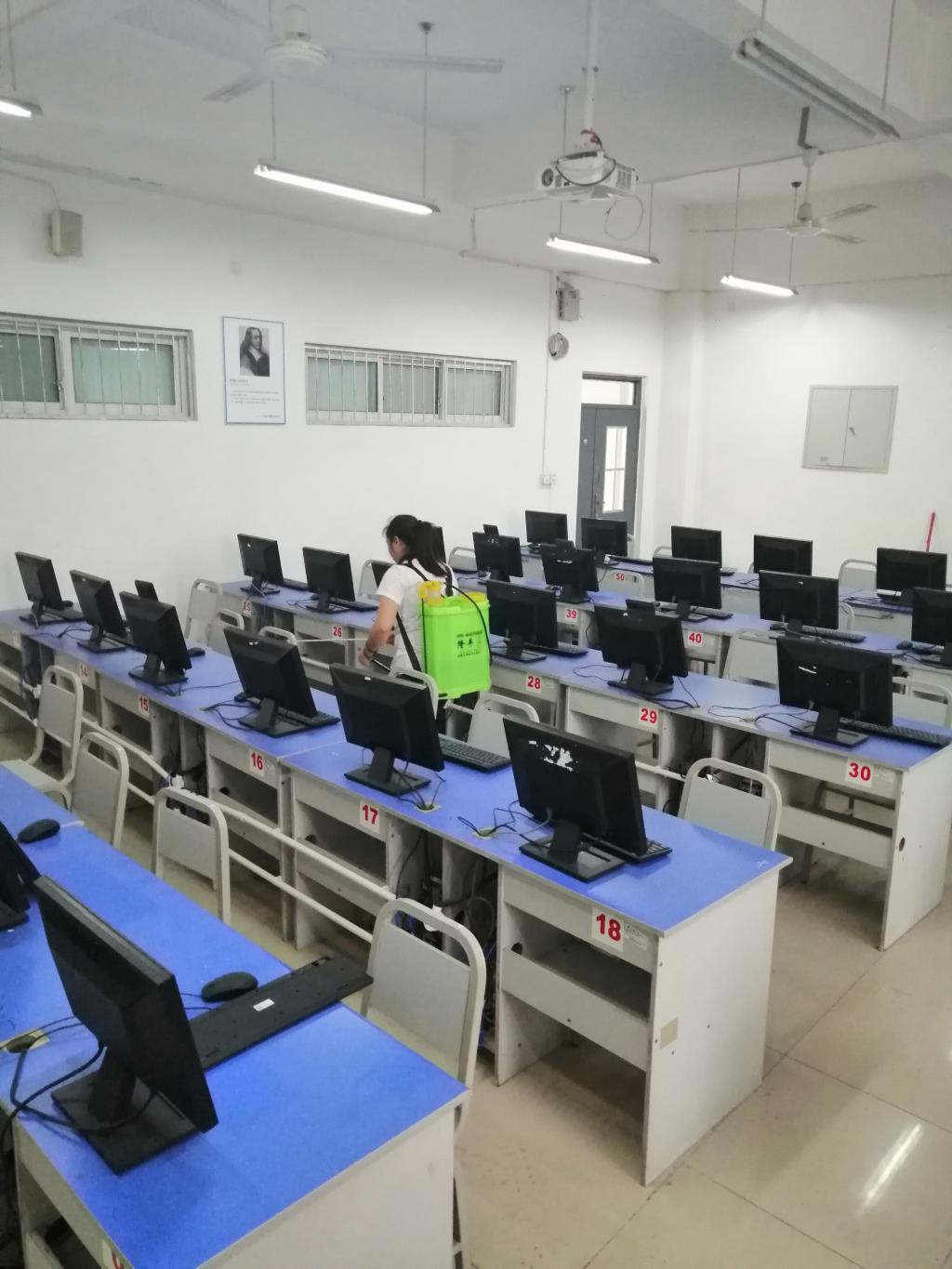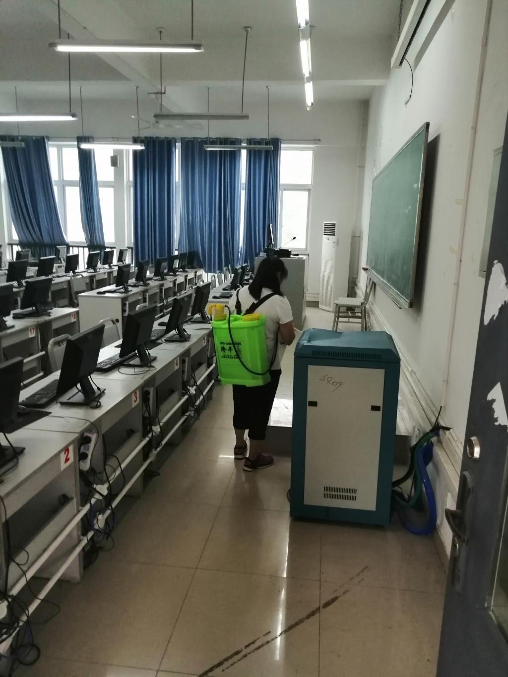 2020年9月9日上午,后勤处安排的消毒人员来到黄色漫画 。黄色漫画 对疫情防控工作高度重视,派出专人进行这项工作,先向消毒人员说明需要消毒的实验室房间编号,并向其说明为保护计算机设备在消杀过程中应注意的具体事项。然后有序引导消毒人员进入每一个实验室,监督其消毒的整个过程,以防出现意外情况。在整个消杀过程中,消毒人员做到了遵守说明、操作规范。