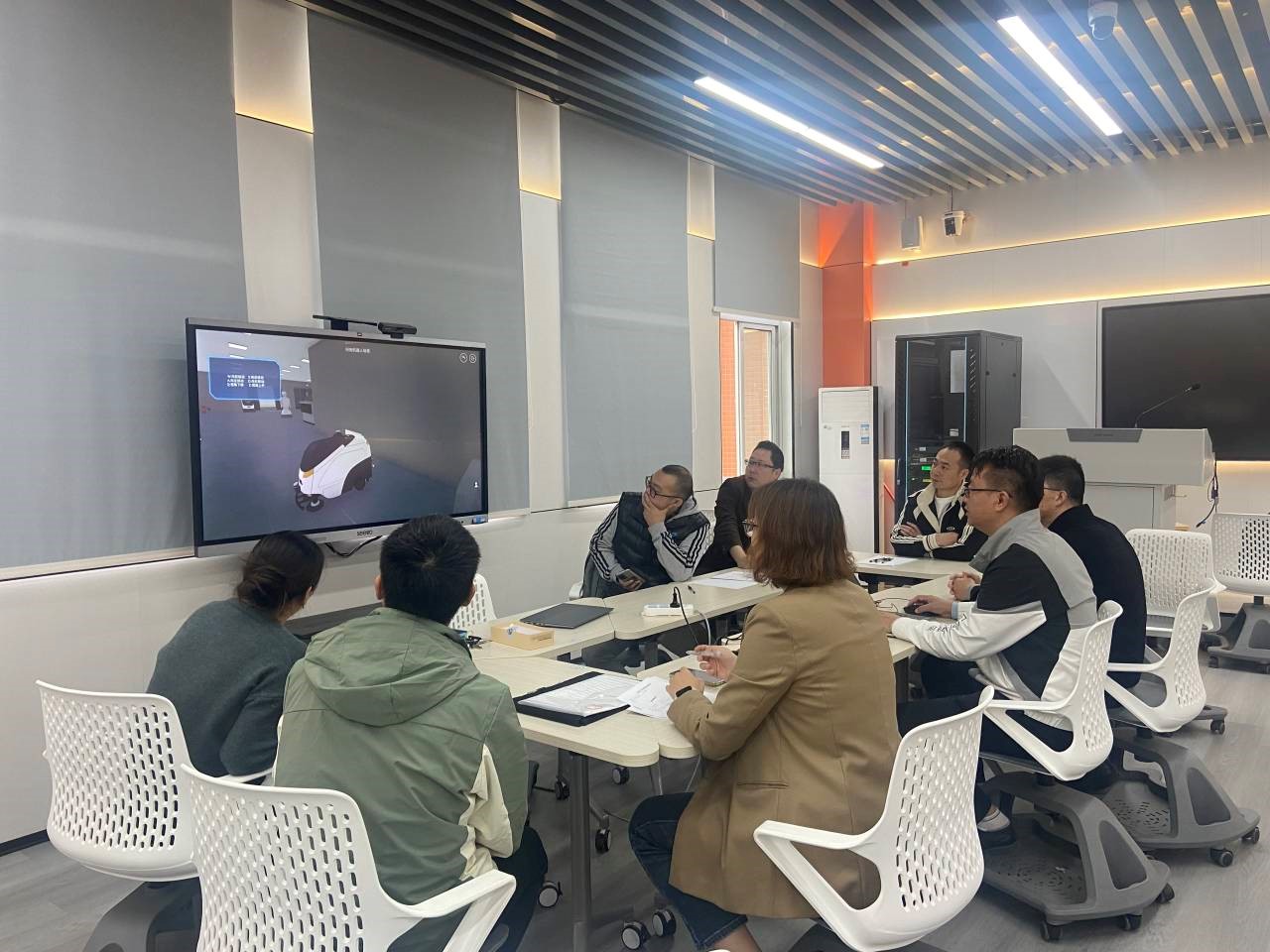 张志强、李玥玥等5位专家到场参与了学院该项目的验收。实验室主任芶小珊及实验室其他人员参会,向与会专家详细介绍了项目的各部分内容及应用环境。